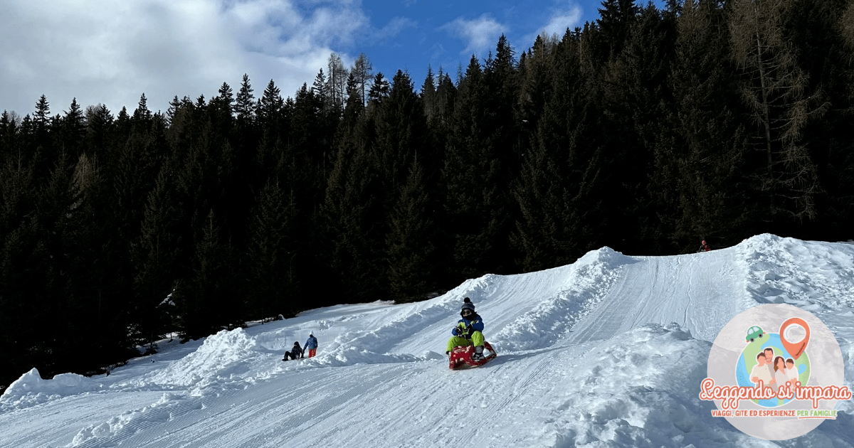 All’esterno de rifugio, abbiamo trovato anche 3 discese per gli slittini, dove i bambini hanno potuto divertirsi tra scivolate e risate.